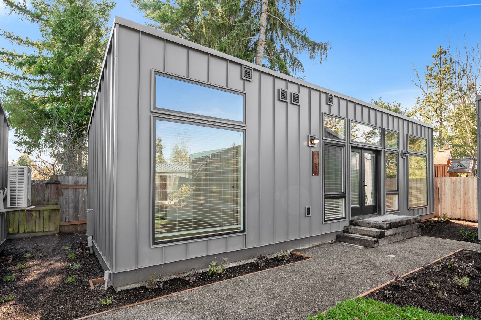 Welcome to Morris Street Commons Modular Living! In East Portland, OR, this newly constructed home offers a unique blend of cozy comfort and convenience. This unit has 2 bedrooms and a full bathroom. The home features high ceilings, a washer/dryer in the unit, and a quaint outside rear deck. Off-street parking is available, providing an added layer of convenience. The skylight is a standout feature, bathing the home in natural light and creating a warm, inviting atmosphere, with a shared storage building on site.